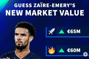 德转社媒预热埃梅里身价变化,这位巴黎球员目前身价5000万欧,他可能涨至5500万欧、6000万欧或者6500万欧。本赛季,20岁埃梅里代表巴黎出战26场法甲,贡献2球4助攻。